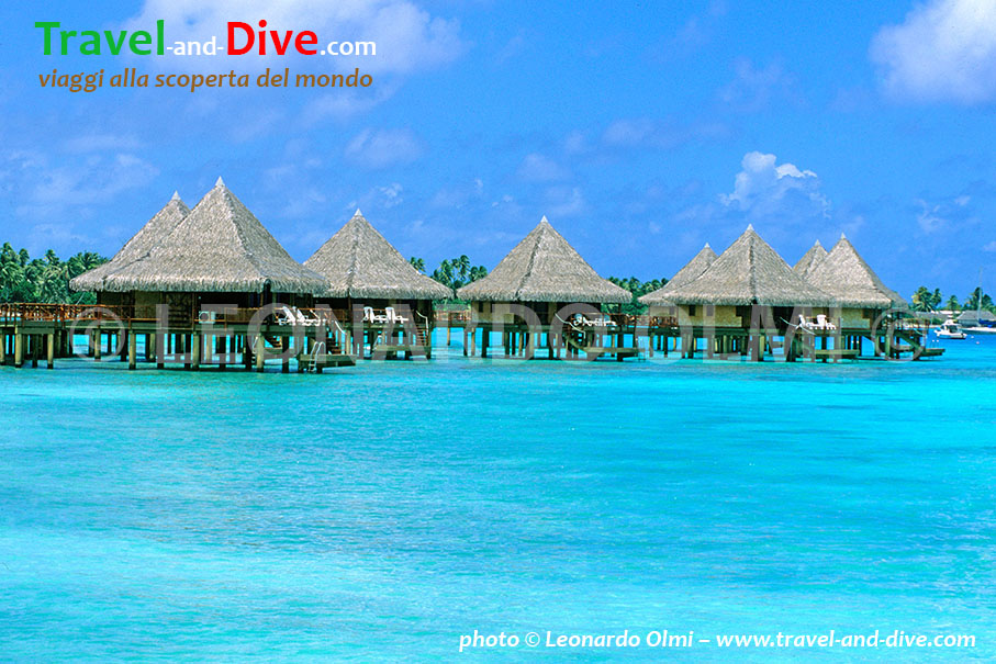 Una volta a terra recupero i miei bagagli e salgo sul minibus dell’albergo, che in meno di dieci minuti raggiunge l’elegante e indisturbato Kia Ora Village, l’unico vero resort dell’isola, dove ogni bungalow si trova sulla spiaggia ed è corredato da balcone con vasca a idromassaggio. I più belli sono i faré, che copiano lo stile delle tipiche case polinesiane costruite su palafitte. A differenza delle altre isole di origine vulcanica, che avevo visitato in precedenza (come Tahiti, Moorea e Bora Bora), Rangiroa si presenta come un cerchio di palme e corallo che invece di coronare un isola, come in tanti altri reef del Pacifico, circonda un altro mare.